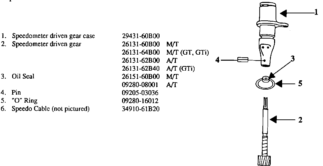 In cases where transmission oil leaks from the speedometer head, replace the following components: