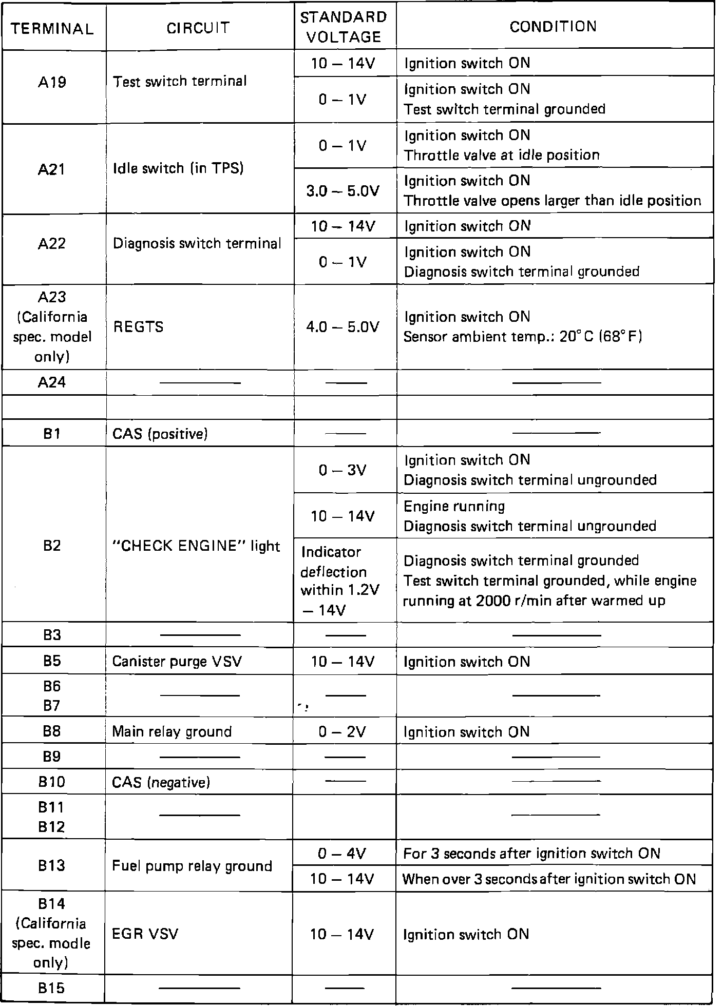 ECM Connector Terminal Position (View From Wire Harness Side):