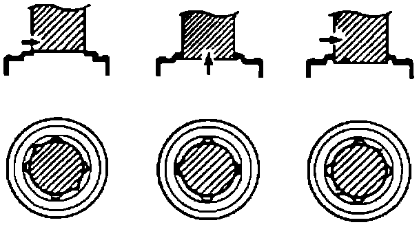 With lip seal pressed in completely, its upper face must be positioned lower than the circlip fitting groove. Be sure to visually check its position.