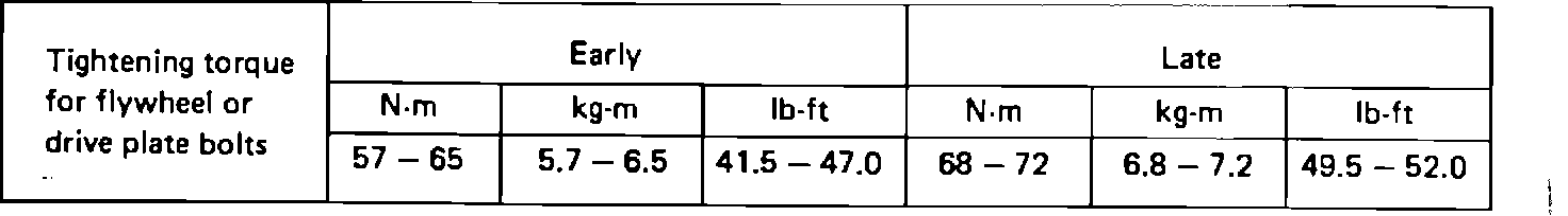 This is to inform you that the flywheel and drive plate (flex plate) bolt tightening torque has been changed: