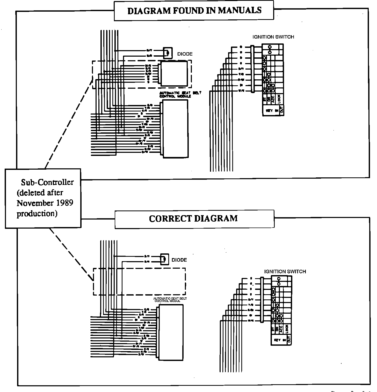 Beginning with November 1989 production, the sub-controller and it's wiring are deleted from Swift vehicles, due to the modification of the main controller (P/N 38890-60B00 changed to P/N 38890-60B01) however, the service manuals show the wiring and parts for the sub-controller. Please make the appropriate changes to your service manuals (in the Body Section) to reflect these changes. These changes are shown in detail on this and the following pages.