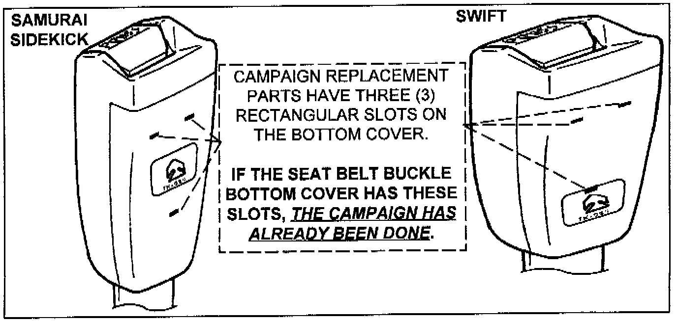 NOTE:ONLY TAKATA-MANUFACTURED FRONT SEAT BELTS OF THE STYLE SHOWN IN THIS BULLETIN ARE AFFECTED. ALL OTHER STYLES AND SEAT BELTS MANUFACTURED BY COMPANIES OTHER THAN TAKATA, ARE NOT AFFECTED.
