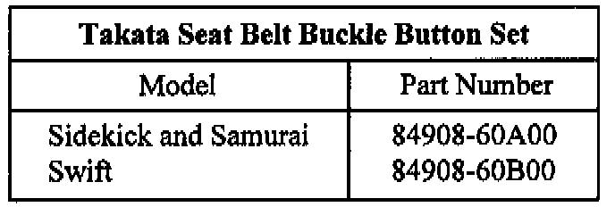 IDENTIFICATION AND REPLACEMENT PROCEDURES FOR THE TAKATA SEAT BELT BUCKLE LATCH BUTTON