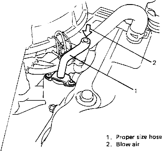 - Blow air into the hose and check that air flows with difficulty from cylinder head side to intake manifold side. If air flows without difficulty, valve is stuck in "Open" position. Replace PCV valve.