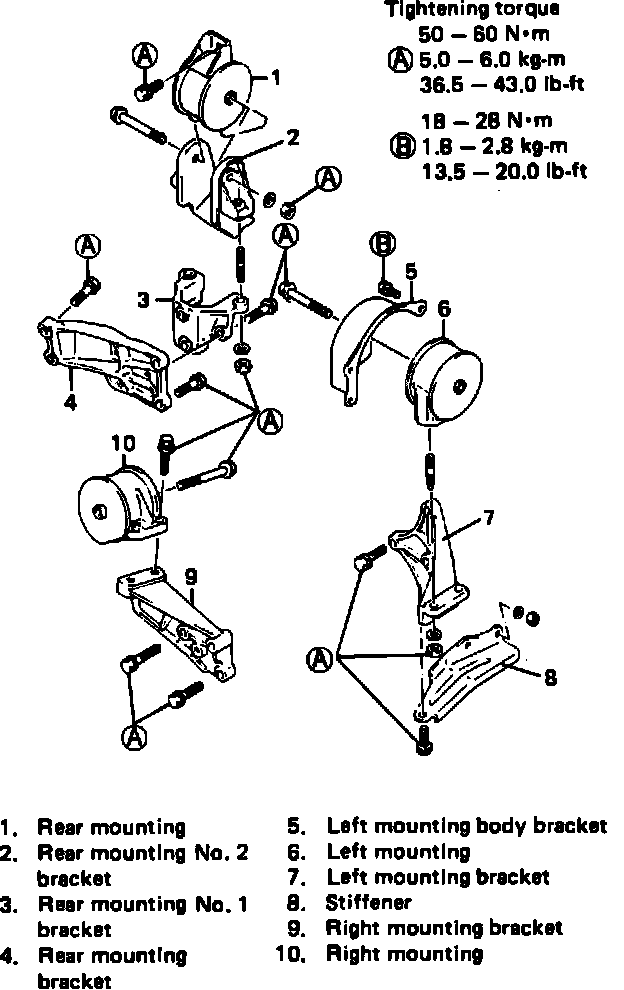 Fig. 3 Exploded View Of Engine Mounting. Manual Transmissions: