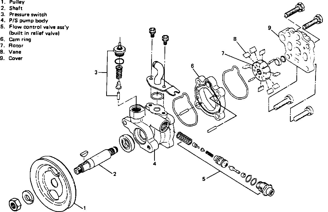 1. Remove power steering pump as described under POWER STEERING PUMP.