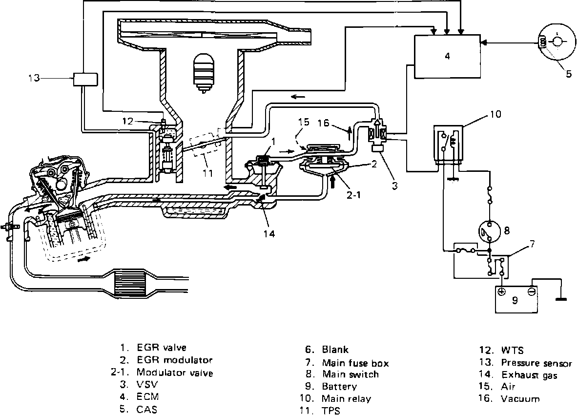 The EGR valve is controlled by EGR modulator and VSV controlled by ECM according to signals from various sensors.