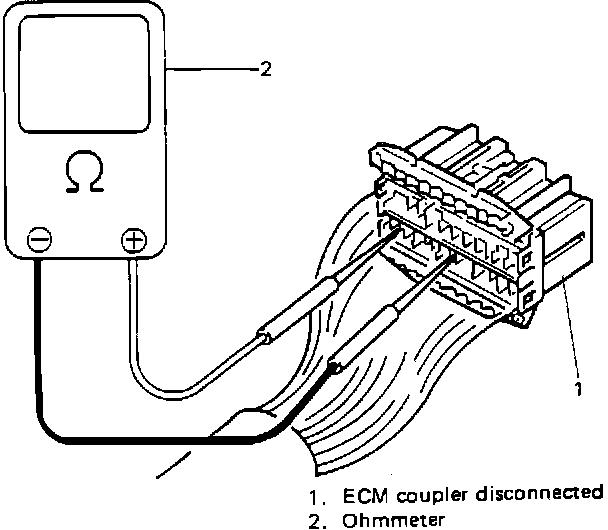 CAUTION: The ECM cannot be checked by itself. Never connect a DVOM to the ECM pins without the harness connected.