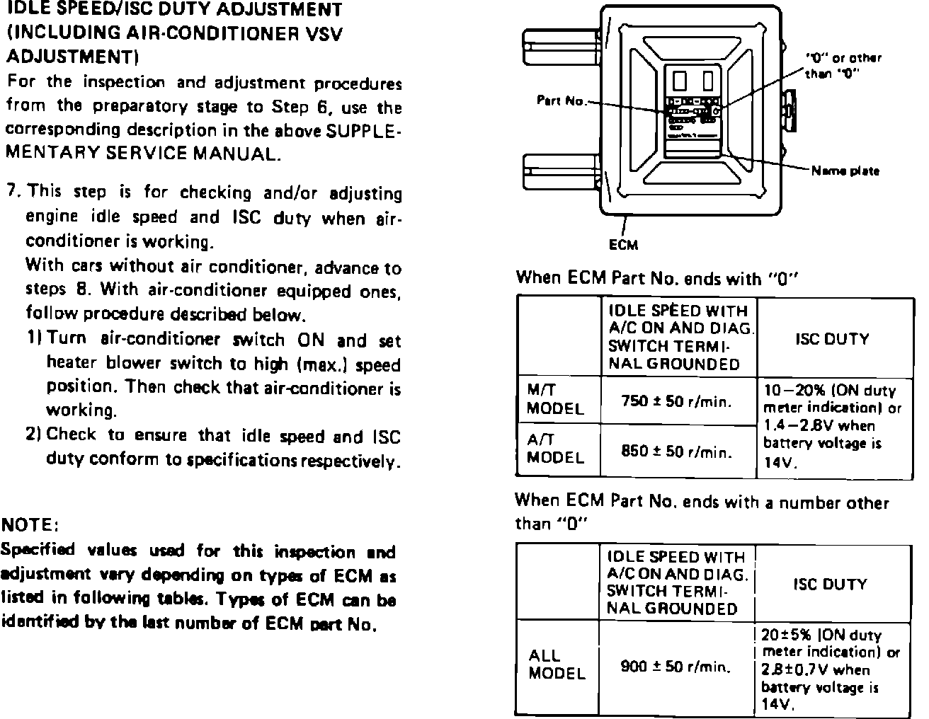 SUBJECT: UPDATED ADJUSTMENT PROCEDURE AND SPECIFICATION FOR IDLE SPEED AND IDLE SPEED CONTROL (ISC) DUTY