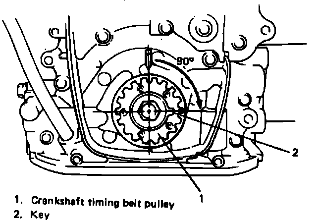 3. Using 17 mm socket, turn crankshaft pulley clockwise until V mark on pulley aligns with 0 mark on timing belt cover.