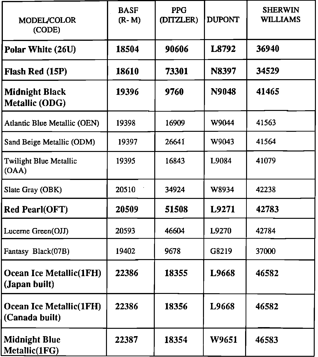 Paint Codes - 1989 Through 1992