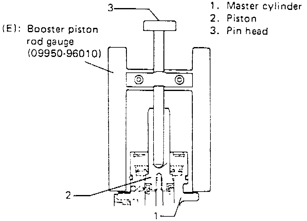 c. Set measuring tool No. 09950-98210, or equivalent, on master cylinder and push pin until it contacts piston, Fig. 3.