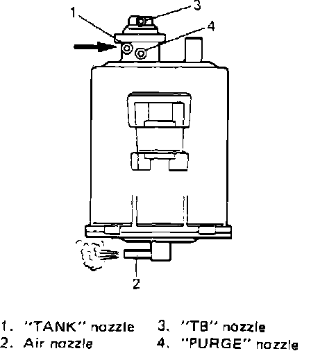 - When air is blown into "PURGE" nozzle while applying more than 80 mmHg vacuum to "TB" nozzle, air should come out from "TANK" nozzle and air nozzle located at the bottom of canister.