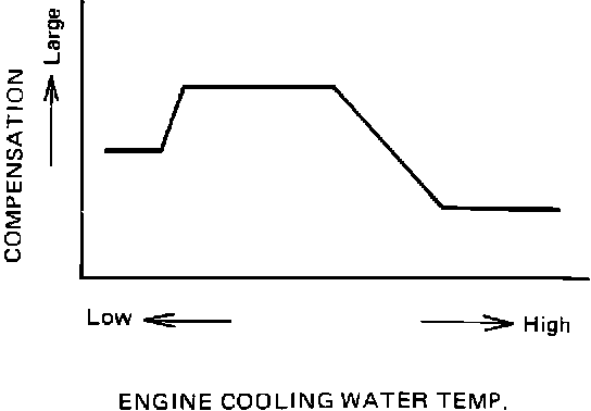 When the idle switch is ON, the ignition timing is determined by adding basic timing advance which varies according to engine speed, temperature compensation advance and compensating advance for idle speed stability to the initial timing.