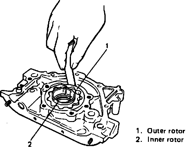 2. Inspect inner and outer rotors, rotor plate and oil pump case for excessive wear or damage.