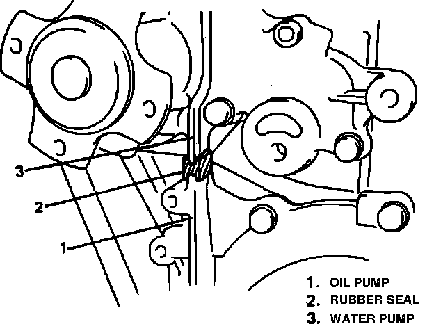 4. Install rubber seal between oil pump and water pump, Fig. 60.