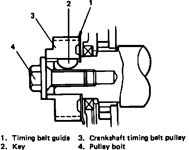 7. Remove crankshaft timing belt pulley and timing belt guide.