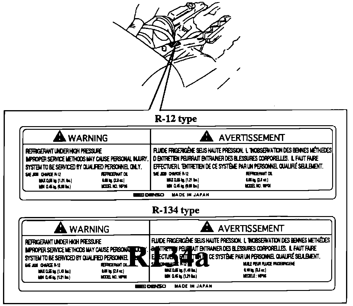IDENTIFICATION BETWEEN R-12 TYPE AND R-134a TYPE A/C