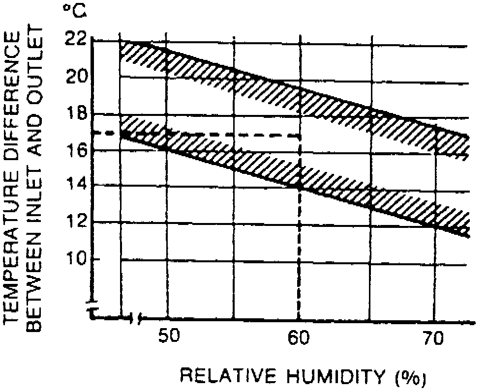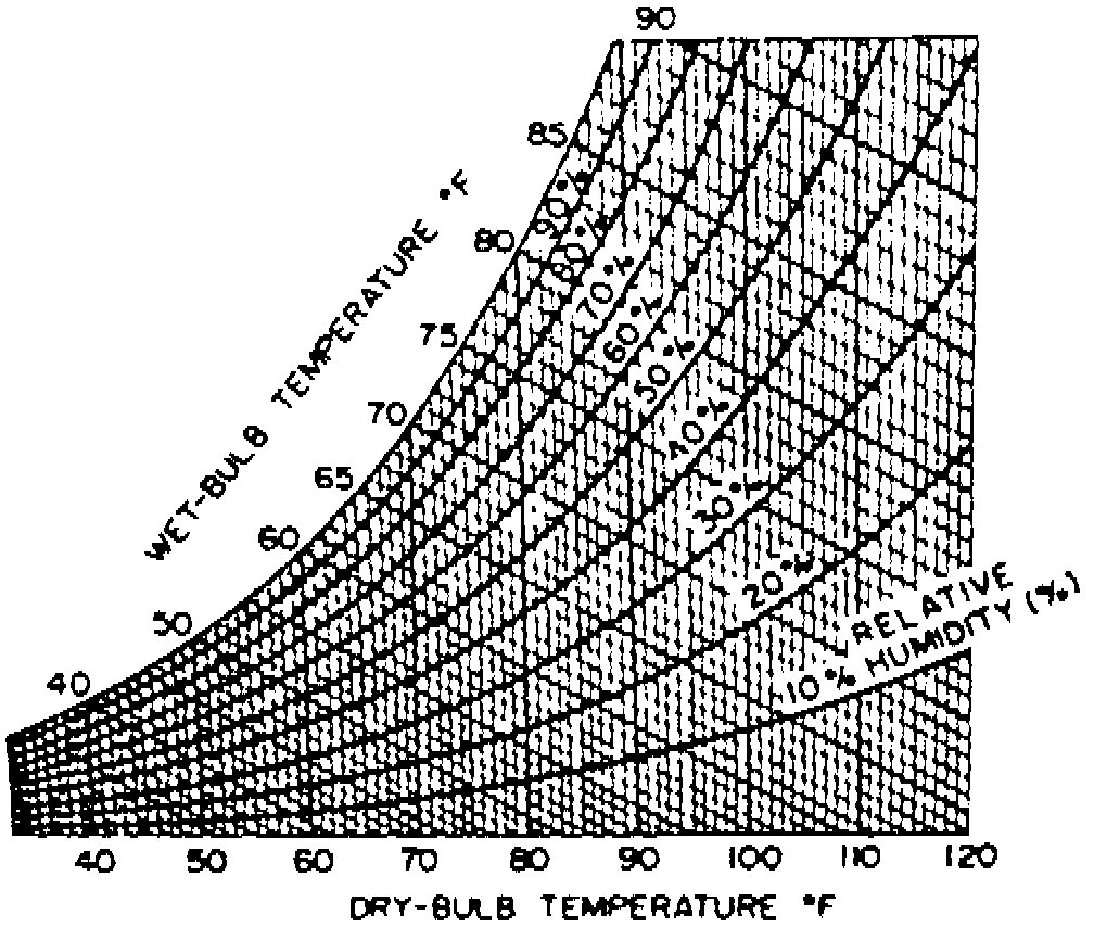 7. Compare temperatures of dry and wet bulb portions of psychrometer, then determine relative humidity using graph, Fig. 4. Record reading.