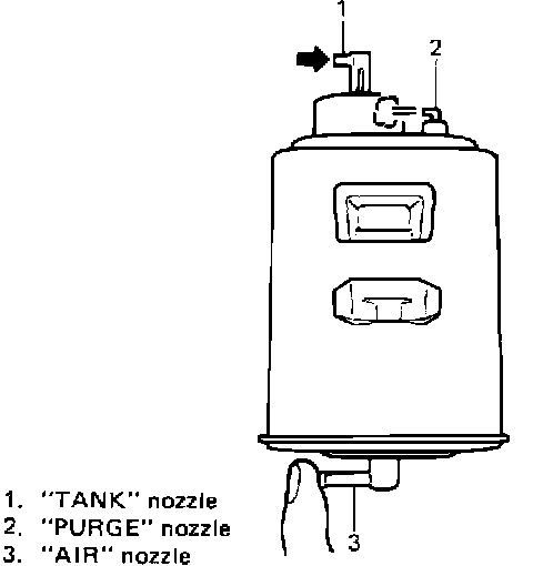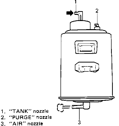 WARNING: DO NOT SUCK nozzles on canister. Fuel vapor inside canister is harmful.1. Disconnect vacuum hoses from canister.