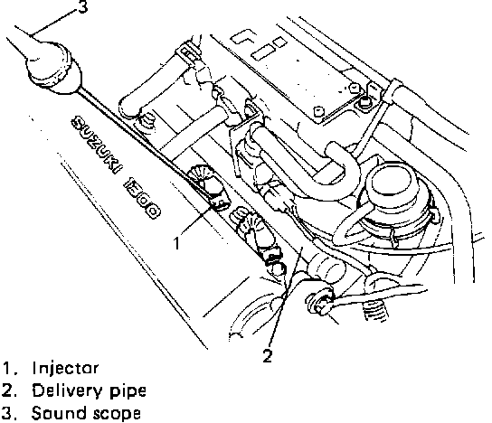 - Using sound scope or such, check operating sound of injector when engine is running or cranking.