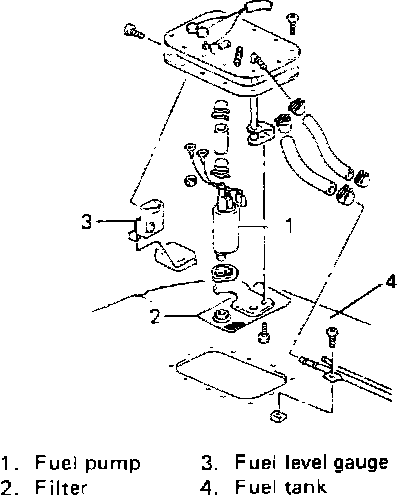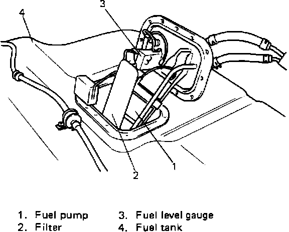- Check fuel pump filter for evidence of dirt and contamination. If present, clean and check for presence of dirt in fuel tank.