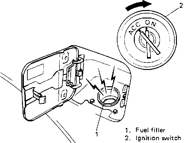 - Remove filler cap and turn ON ignition switch. Then fuel pump operating sound should be heard from fuel filler for about 3 seconds and stop. Be sure to reinstall fuel filler cap after checking.