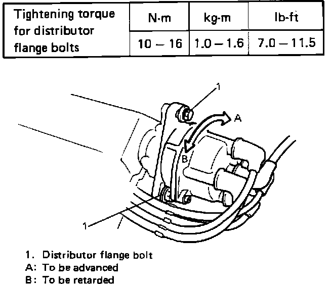 - After tightening distributor flange bolts, recheck that ignition timing is within specification.