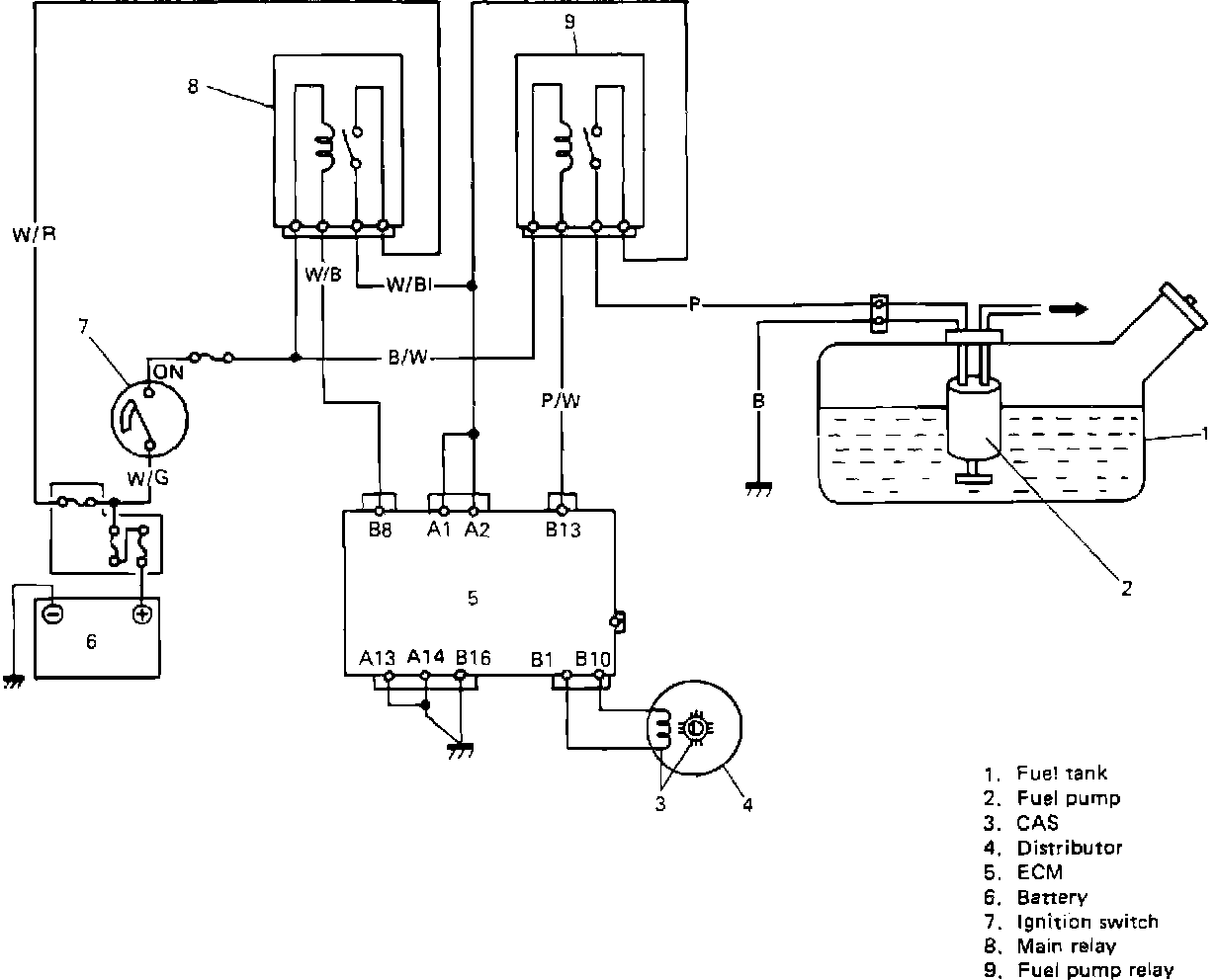 ECM controls ON/OFF operation of the fuel pump by turning it ON via the fuel pump relay under either of the following conditions.