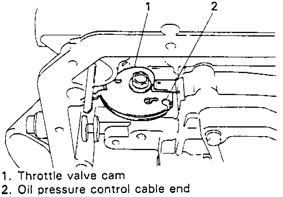 1. Remove cable cover, then disconnect oil pressure control cable from accelerator cable.2. Drain transaxle fluid into appropriate container and remove oil pan.