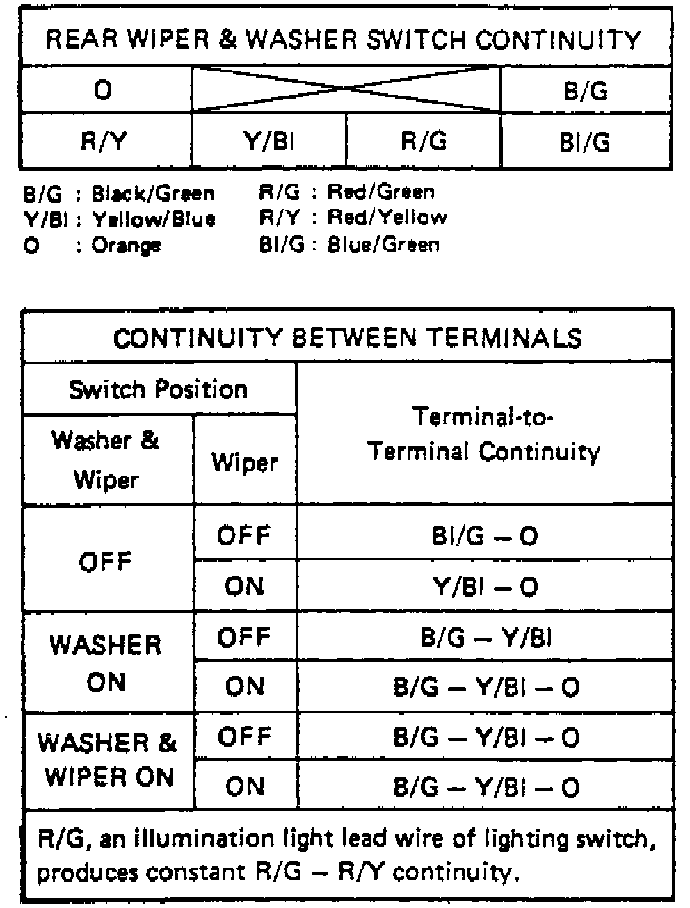 Fig. 10 Wiper/Washer Switch Continuity (Rear):