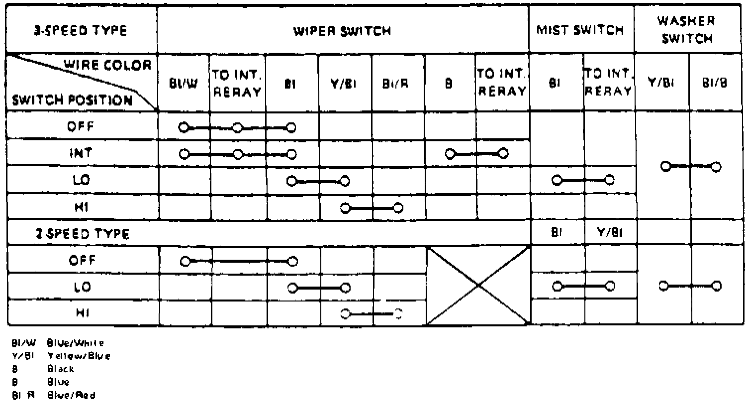 Fig. 7 Wiper/Washer Switch Continuity (Front):