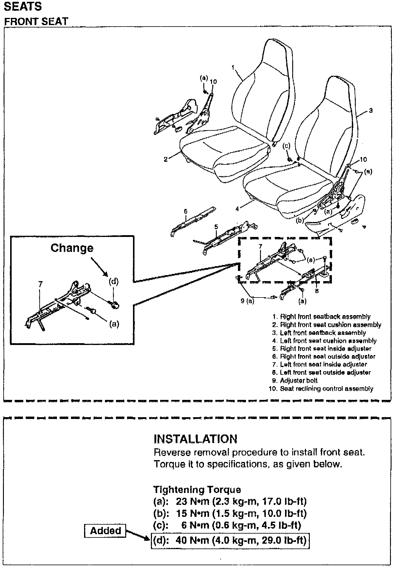 AMENDMENTS OF TIGHTENING TORQUE OF FRONT SEAT RAIL MOUNTING BOLT