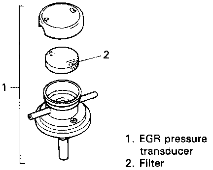 2. Remove EGR pressure transducer and plug nozzle with finger. Blow air into another nozzle and check that air passes through to air filter side freely.