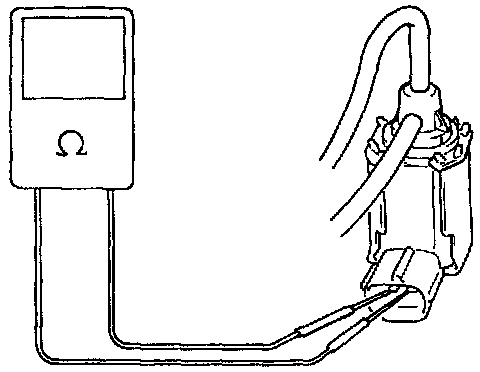 1. With ignition switch OFF, disconnect coupler from EVAP canister purge valve.2. Check resistance between two terminals of EVAP canister purge valve.