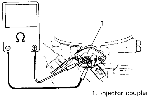 2. Connect ohmmeter to each injector terminal and measure resistance.
