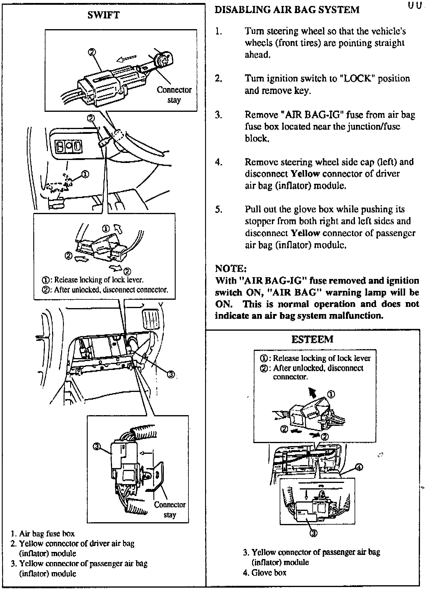 AIR BAG SYSTEM ENABLE/DISABLE PROCEDURE