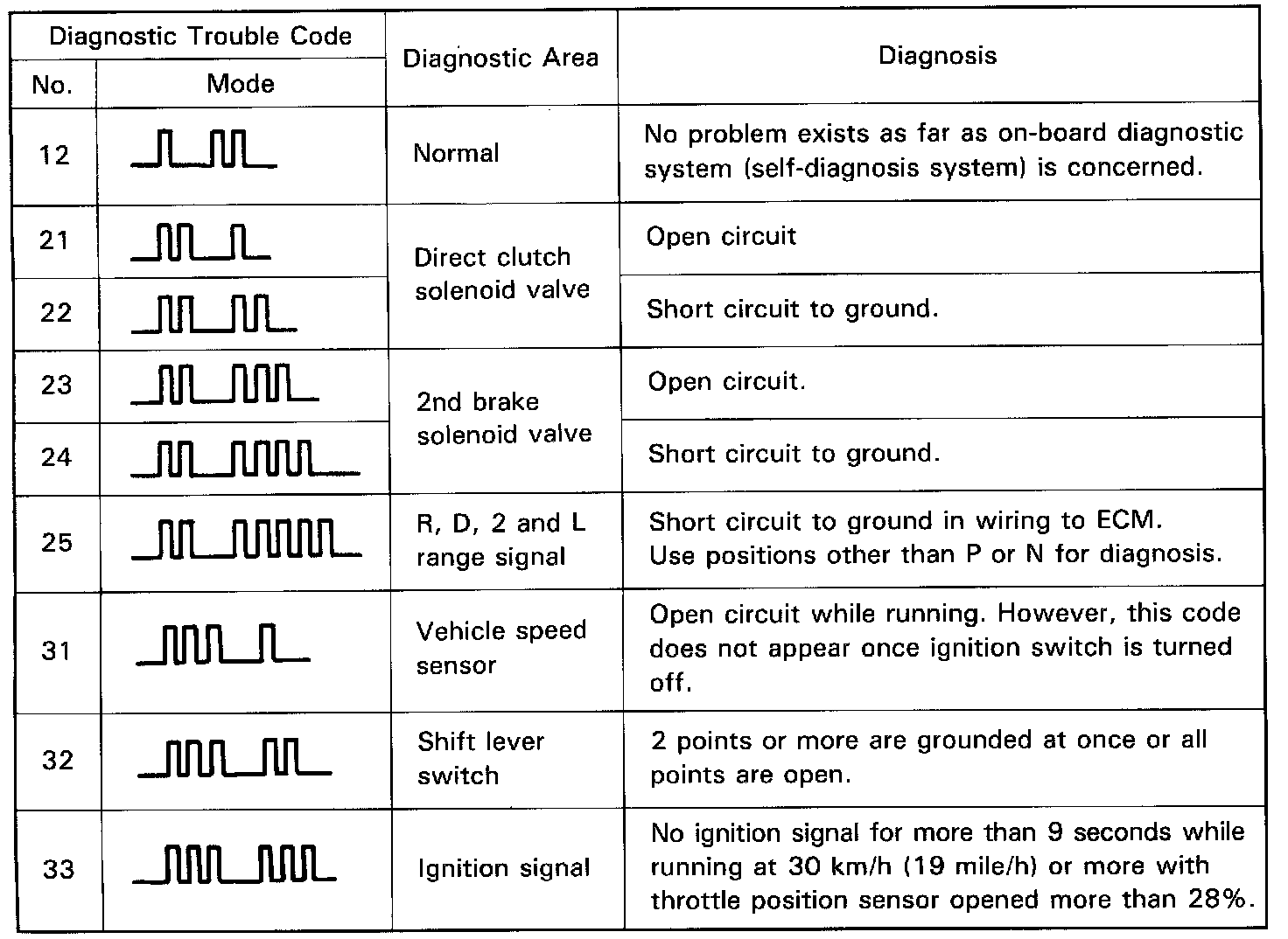 - Code memory, if any, will be erased when ignition switch is turned OFF.