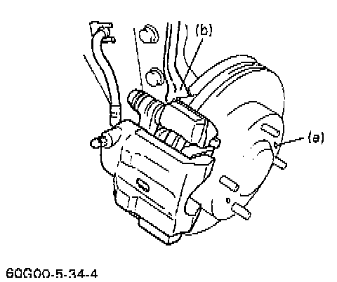 3. Torque caliper carrier bolts (a) to: 5.5 Nm (4.0 ft. lbs.) and (b) to: 85 Nm (61.5 ft. lbs.).