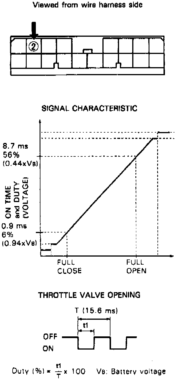 2. If duty signal appears, Fig. 14, then throttle valve opening signal is good.