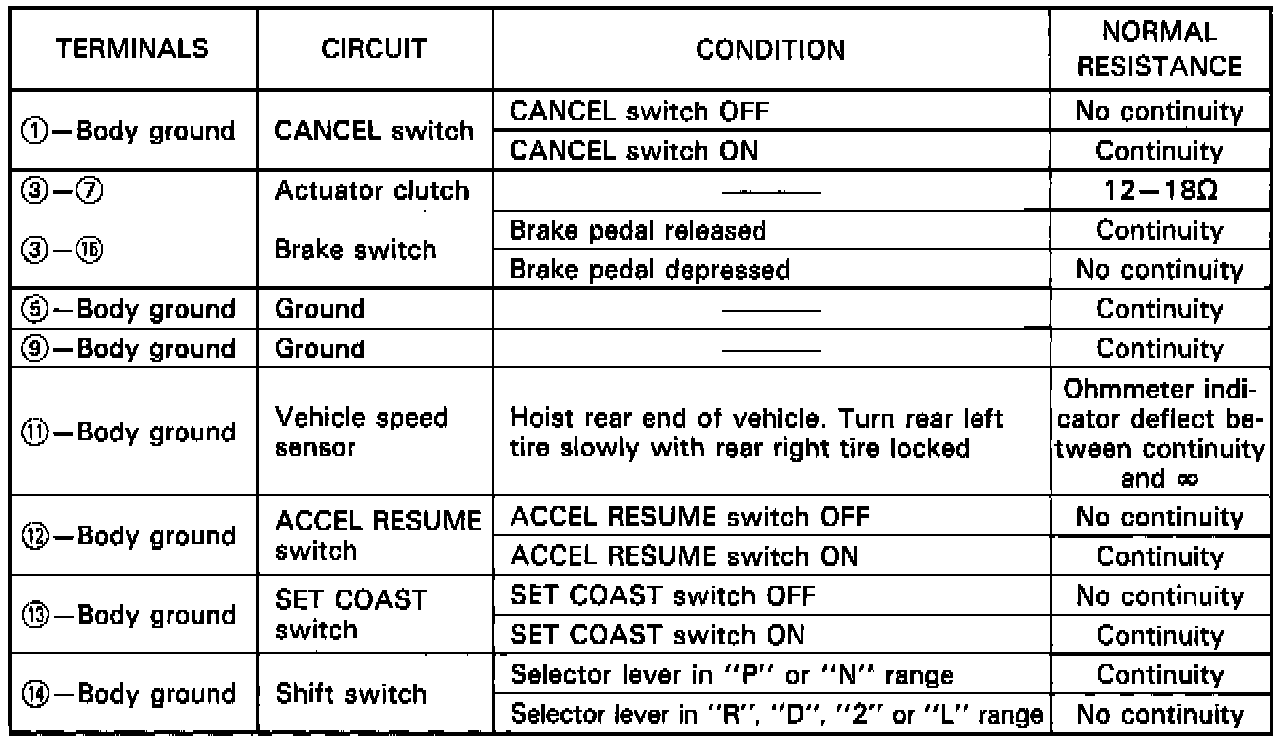 Fig. 7 Cruise Control Unit Resistance Test.: