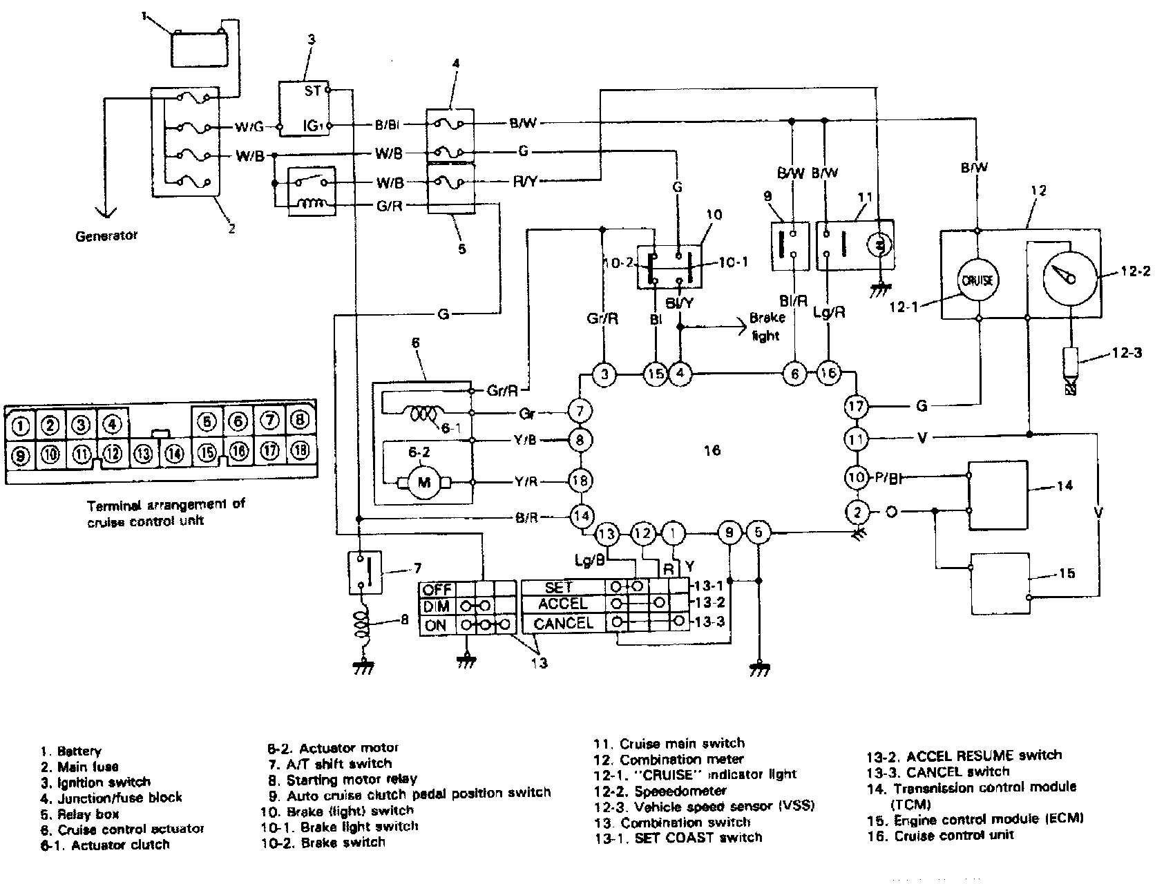2. If all items within system are in good condition and cruise control system fails to operate properly, then replace control unit.