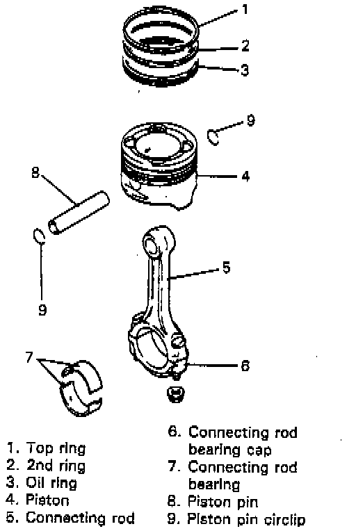 9. Push piston and connecting rod assembly out through the top of cylinder bore.