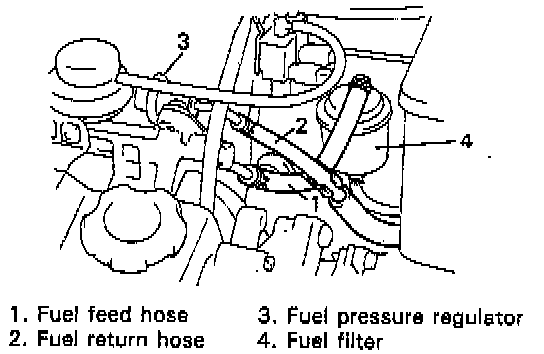 7. Disconnect fuel feed hose from pipe, and disconnect fuel return hose from fuel pressure regulator.