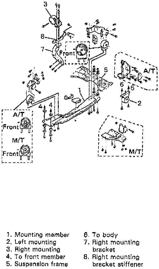 23. Remove engine right mounting from right mounting bracket and stiffener.