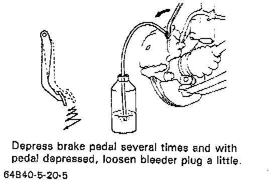 3) Depress brake pedal several times, and then while holding it depressed, loosen bleeder plug about one-third to one-half turn.