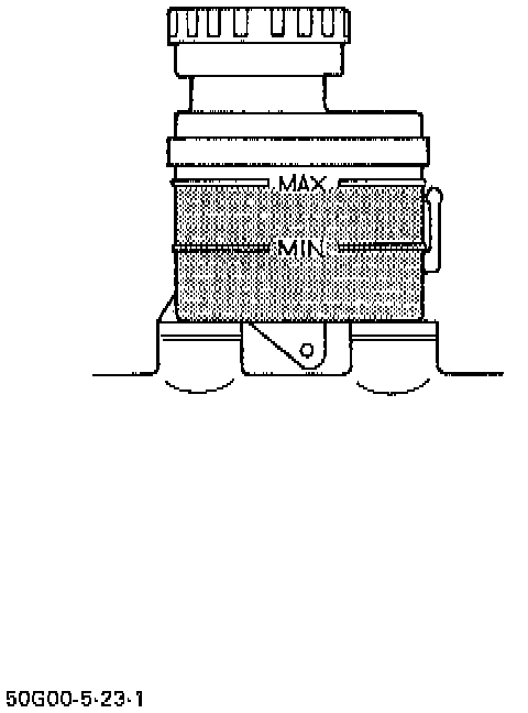 Be sure to use particular brake fluid either as indicated on reservoir cap of that vehicle or recommended in owner's manual which comes along with that vehicle. Use of any other fluid is strictly prohibited. Fluid level should be between MIN and MAX lines marked on reservoir. When warning light lights sometimes during driving, replenish fluid to MAX line. When fluid decreases quickly, inspect brake system for leakage. Correct leaky points and then refill to specified level.