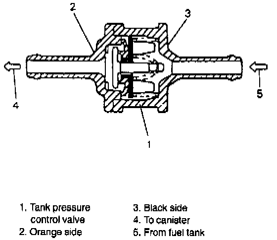 2. Air should pass through valve smoothly from fuel tank side (black side of tank pressure control valve) to orange side when blown hard.