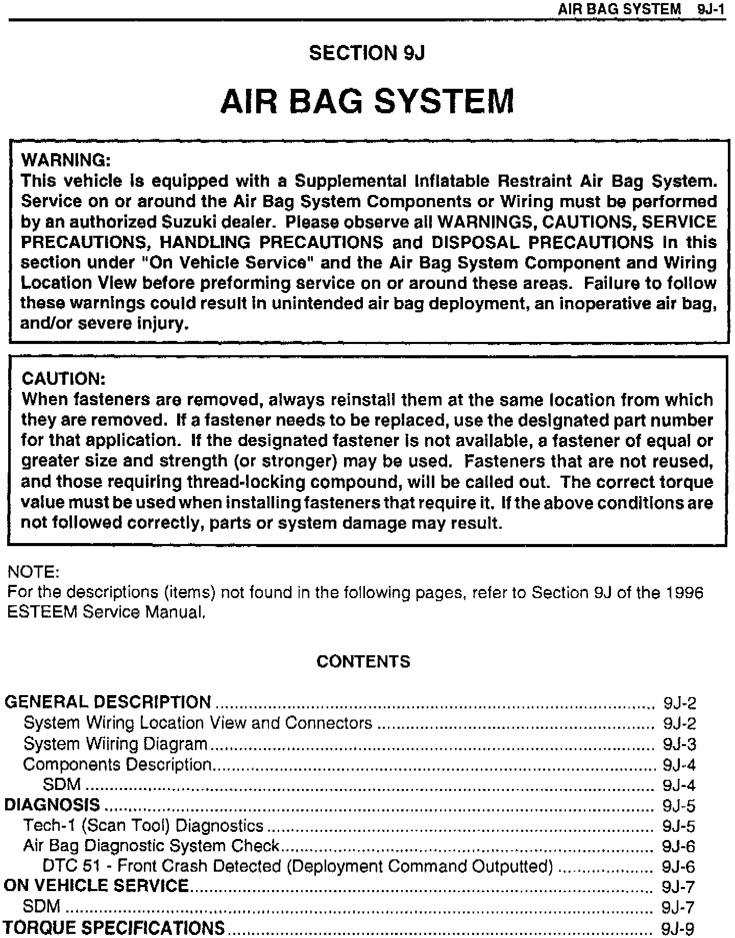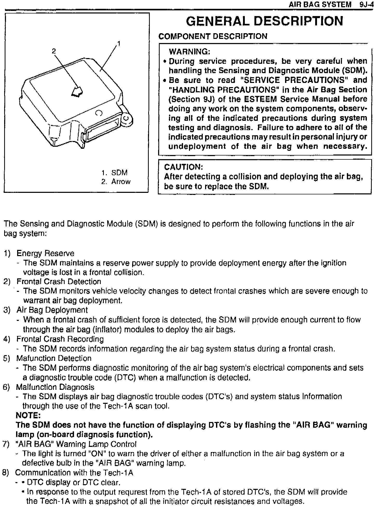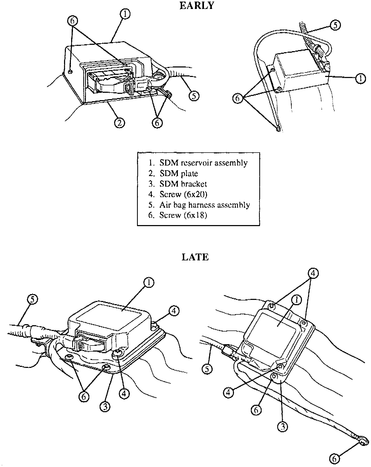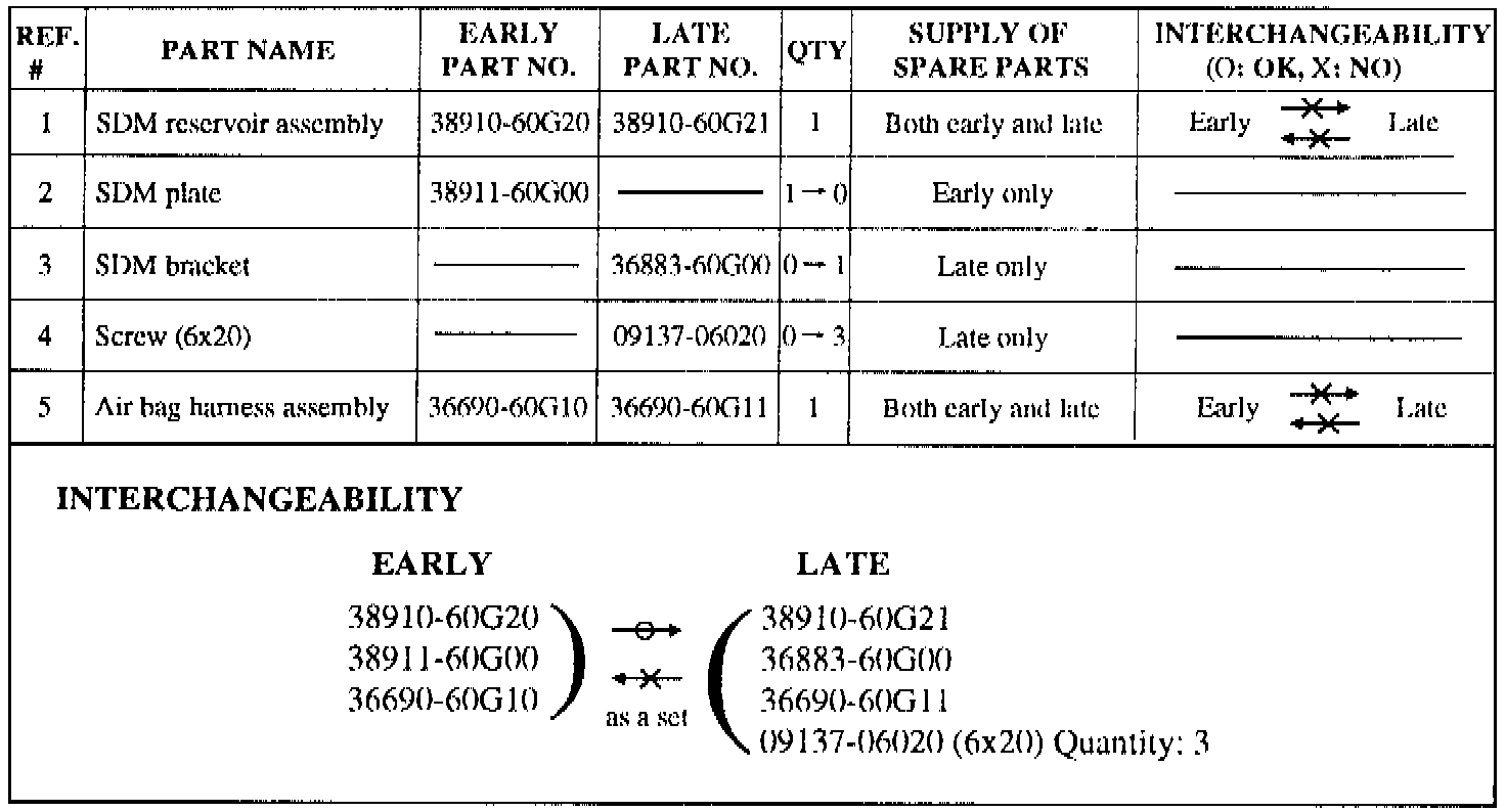 This bulletin is to inform you of the modification of the SDM (Sensing and Diagnostic Module) and air bag harness which has been carried out since February 1996 production. When diagnosing the air bag system, please use the information included in this bulletin.
