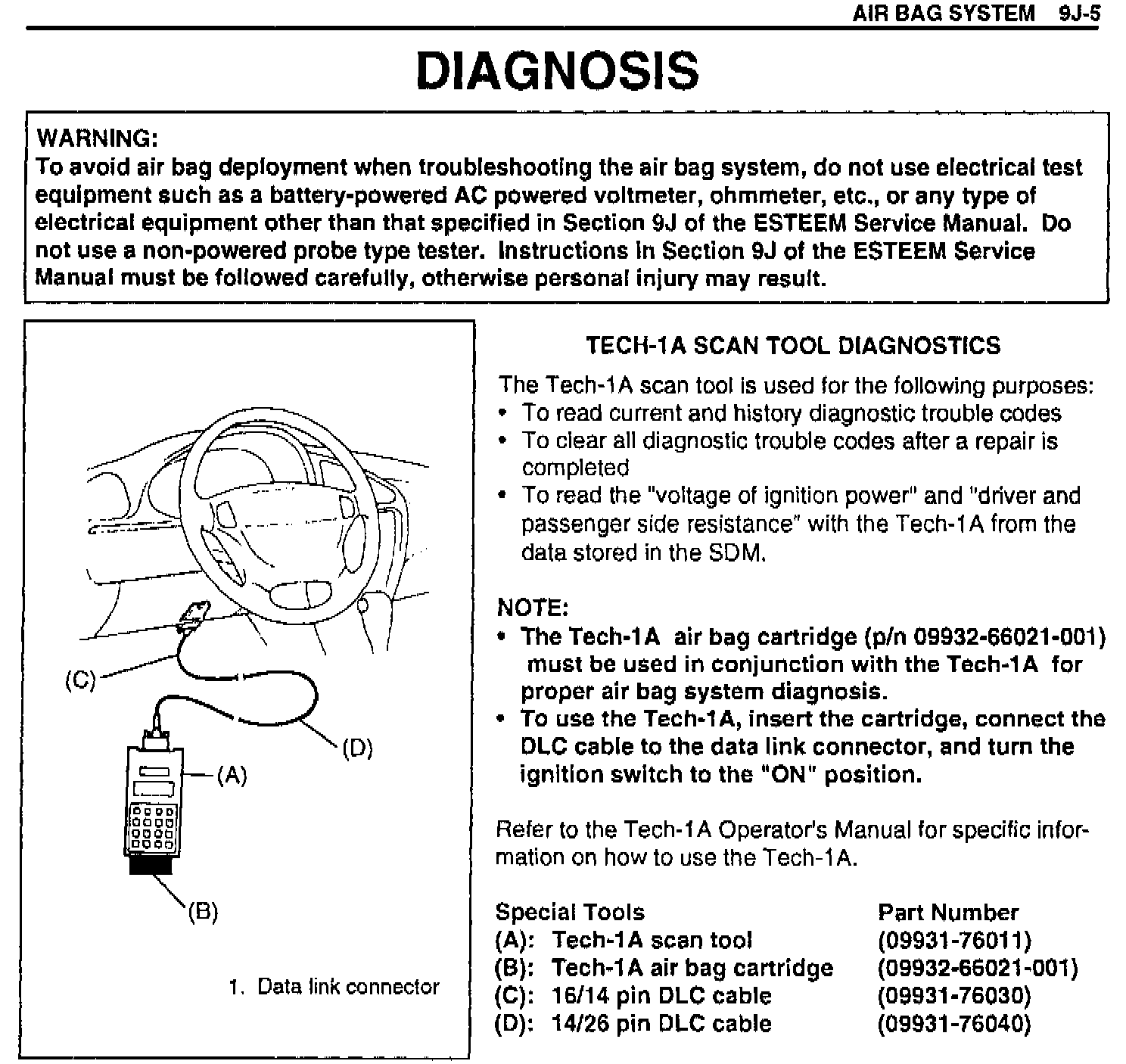 When diagnosing the air bag system, please use the parts and service information listed in this bulletin.